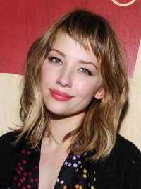 Эшли Симпсон демонстрирует пример, достойный подражания девушек с овальными и узкими лицами, прямыми волосами, которые хотят примерить на себя нетривиальный образ с оригинальной, но не вычурной прической. Вся масса волос аккуратно обрабатывается ступеньками, а челку делают длинной, доходящей примерно до уровня скул, немного рваной, и разделяют на две неравные части по обе стороны лица.