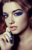 • Так как это вариант вечернего макияжа, можно добавить немного блеска поверх голубых и фиолетовых теней.