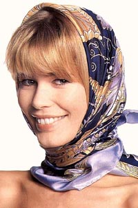 Надев платок на голову, вы можете выглядеть элегантно, особенно, если обернете его вокруг «конского хвоста» или наденете платок, как бандану. А можете быть по девичьи очаровательны, если завяжете платок в виде банта сбоку.