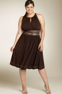 Торжественные платья для полных женщин с проблемной талией – это как раз платья либо с высокой, либо с низкой талией, потому что и те, и другие его прекрасно скрывают. Молодежи хорошо подойдут платья с принтом, но если вас интересуют благородные варианты, выбирайте платья густых оттенков (чернильный, изумрудный, шоколадный) из тонких материалов, которые ложатся мягкими складками. Вы можете сделать красивый напуск в месте выступающего живота, но это будет смотреться как декоративная часть вашего вечернего наряда, а не как недостаток фигуры.