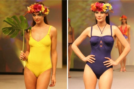 Насыщенный лимонный оттенок показан на подиуме у Petit Bateau. Фиолетовый одинарный купальник стал частью коллекции Opera.