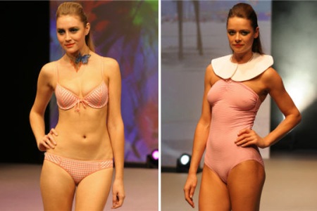 Клетка виши и розовый цвет вновь предлагается Seafolly. Нежно-розовый совместный купальник продемонстрировали Petit Bateau.